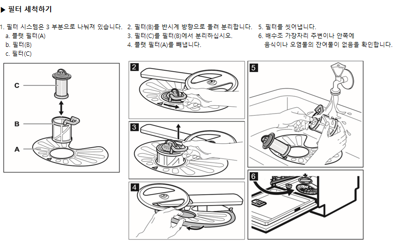 | Q | 식기세척기 | [공용] 필터 청소법이 알고 싶어요. |
